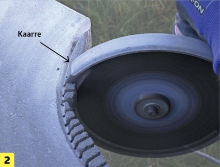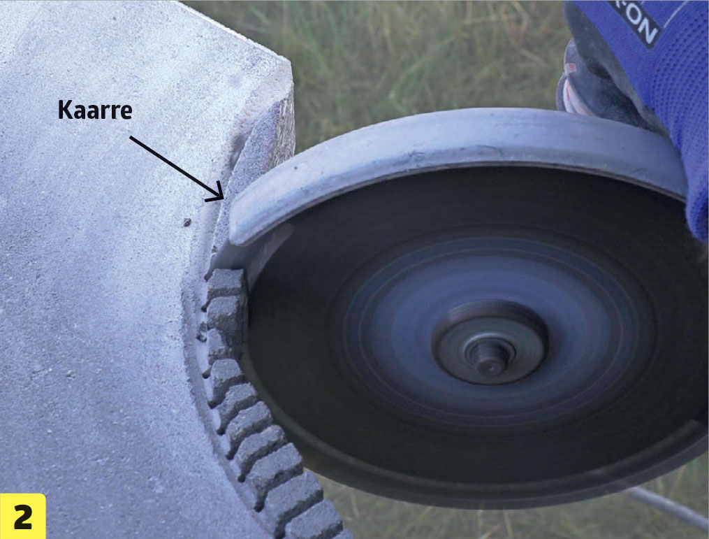 Sadevesikaivon ja kukkapenkin ympärille tarvitaan usein kiviä, joissa on kaarevat reunat. Kiveen voi leikata kaarteen useassa osassa. Suurin osa kaarteesta kannattaa tehdä leikkaamalla kiveen suoria linjoja kulmahiomakoneella. Sen jälkeen kaarre viimeistellään vasaralla ja timanttilkuppilaikalla.