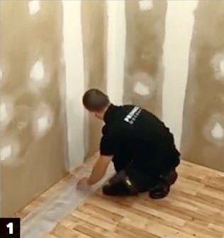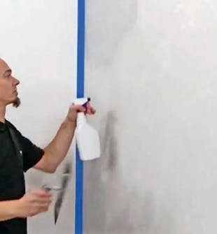 Kastele pinta. Sumuta seinään vettä sumutinpullolla ja tasoita pinta. Levitä sen jälkeen toinen kerros laastia.