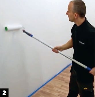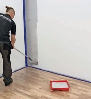 Maalaa seinä. Seinään pitää levittää kaksi kerrosta Decobase-pohjustetta, ennen kuin sen voi maalata tehostemaalilla.