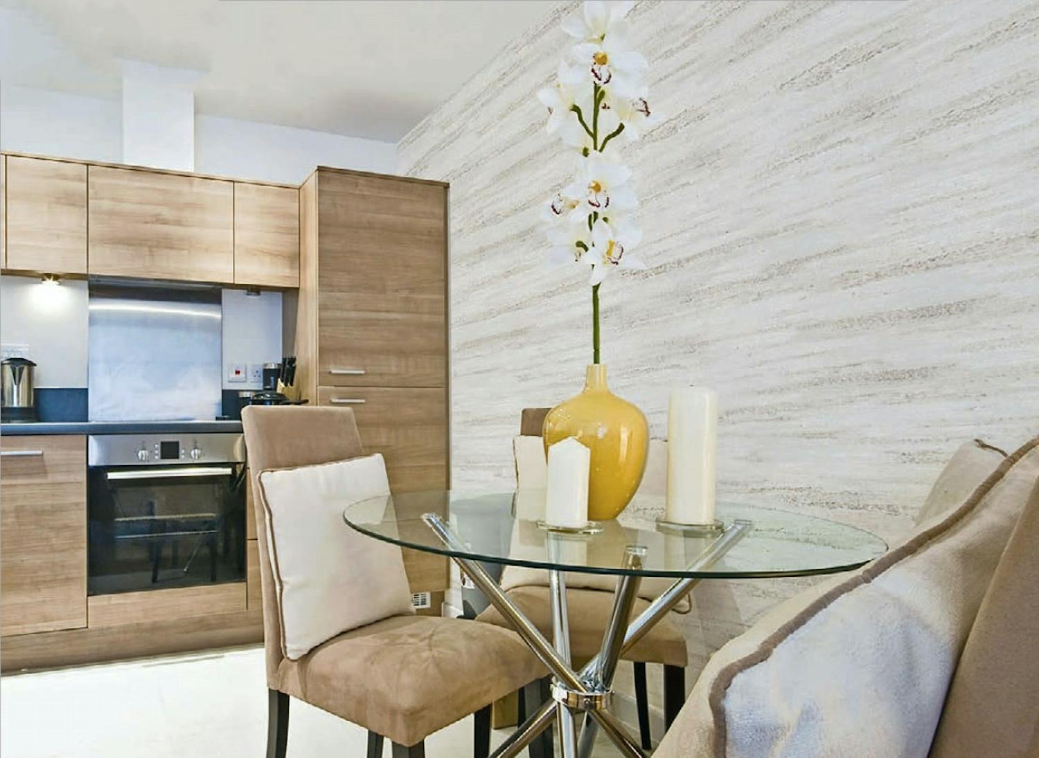 Levitä laasti hiertimellä. Liikuta lastaa eri suuntiin kuvion luomiseksi. Anna seinän kuivua 12 tuntia.