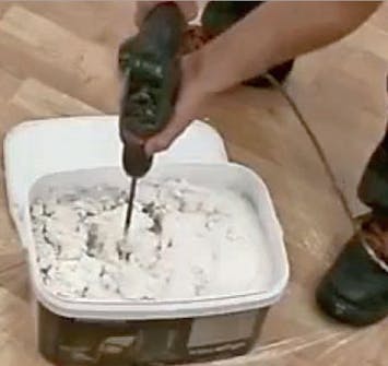 Sekoita laasti. Lisää vettä, kunnes massan koostumus on sopiva. Laasti ei saa olla liian paksua mutta ei myöskään liian vetistä.