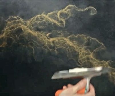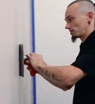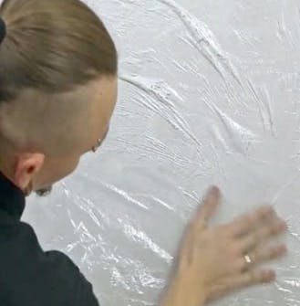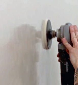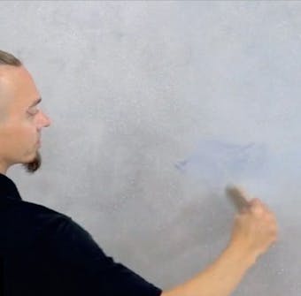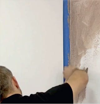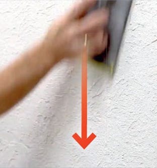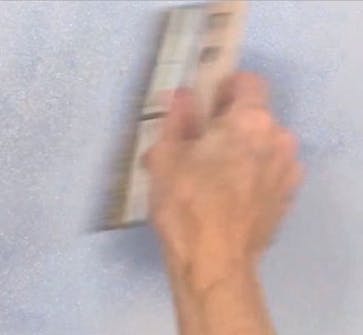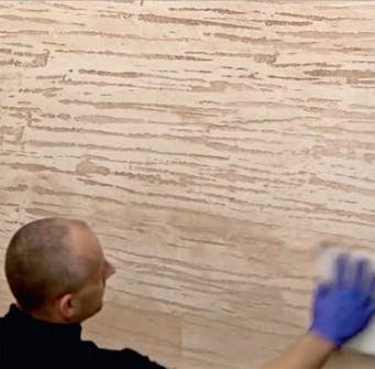 Tee kuvio. Pidä lastaa 90 asteen kulmassa ja tee laastiin mieleisesi kuvio. Tasoita pinta hierti-mellä. Anna seinän kuivua 12 tuntia ja hio pinta jyväkoon 120 hiomapaperilla.