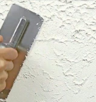 Levitä seinälle ohut kerros laastia hiertimellä. Liikuttele hierrintä eri suuntiin, jotta pintaan tulee kuvioita. Levitä laastia kolme kerrosta.