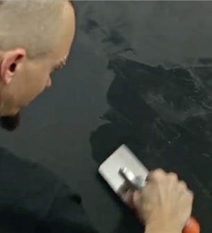 Levitä massa laastikauhalla ja tasoita pinta kokonaan. Kerroksen pitää olla vain pari milliä paksu. Anna laastin kuivua, kostuta pinta ja levitä päälle toinen ohut kerros.