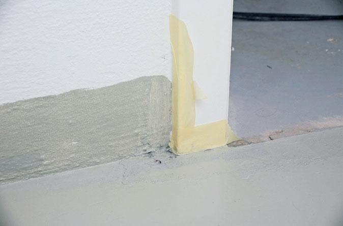 Maalaa aluksi lattian ja seinän rajapinta. Käytä telaa, joka sopii haluamaasi reunuksen korkeuteen. Näin voit maalata tarkasti ja suoraan etkä joudu käyttämään maalarinteippiä.