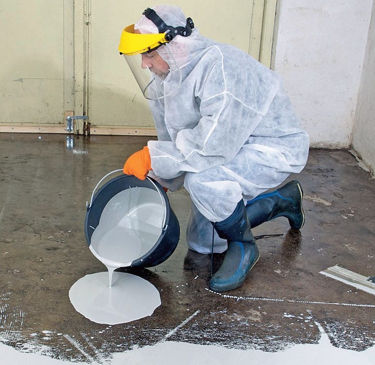 Kaksikomponenttinen epoksimaali kiinnittyy hyvin, jos alusta on täysin puhdas. Tämän voi varmistaa pesemällä lattian puhdistusaineella. Esimerkiksi öljy- tai saippuatahrat puhdistetaan kahteen kertaan.