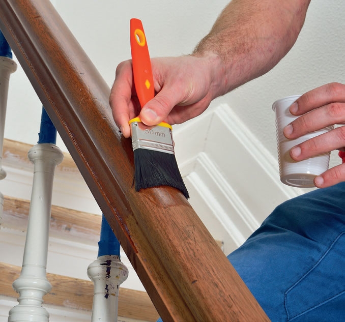 Sivele maalinlioutusainetta puuosiin. Geelimäistä ainetta on tärkeää sivellä tarpeeksi kattava kerros.