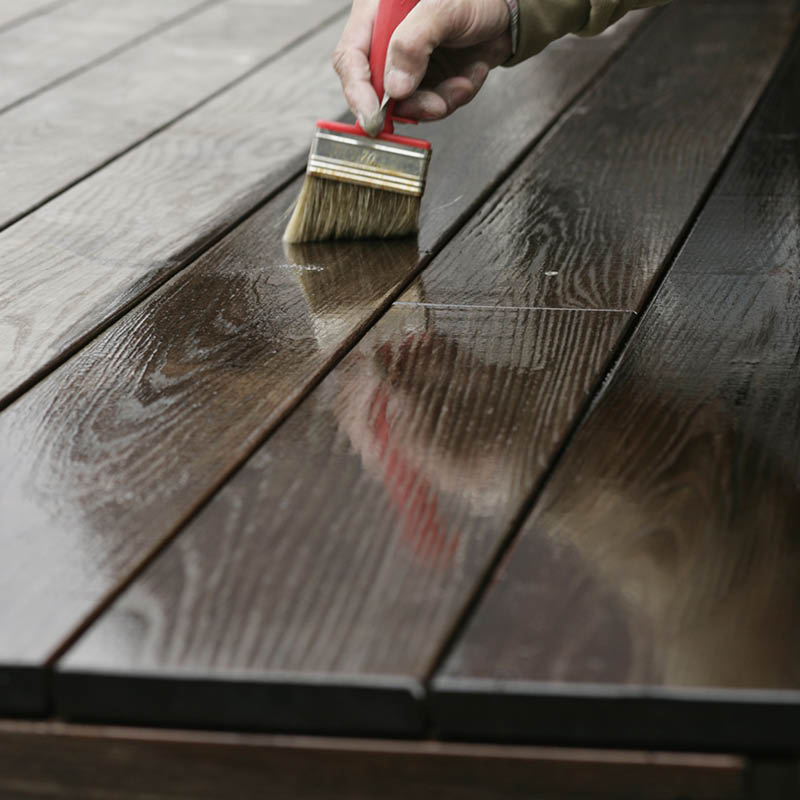 Väri ajan kuluessa ilman pintakäsittelyä: Harmaa. Säännöllinen öljyäminen säilyttää tumman värin.