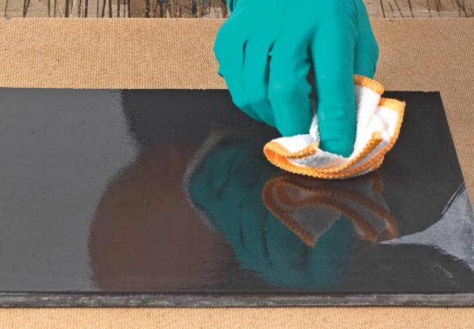 Öljy levitetään kankaalla tai pensselillä ja pyyhitään pois, kun se on imeytynyt varttitunnin, ennen kuin öljy kovettuu.