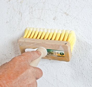 Sekoita tapetinirrotusaine veteen pakkauksen ohjeen mukaan. Sivele tapetille reilusti irrotusainetta kalkkiharjalla.