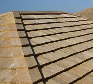 Puupaanuja käytetään paitsi kirkkojen myös talojen ja ulkorakennusten katemateriaalina ja julkisivuverhoiluna. Kuvassa akasiapaanuista valmistettu upea katto.