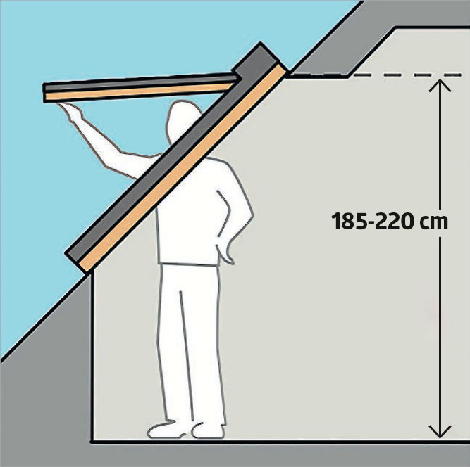- Kuinka ylhäällä ikkunan pitää olla, jotta sitä on helppo käyttää ja sen alla voi seistä.
