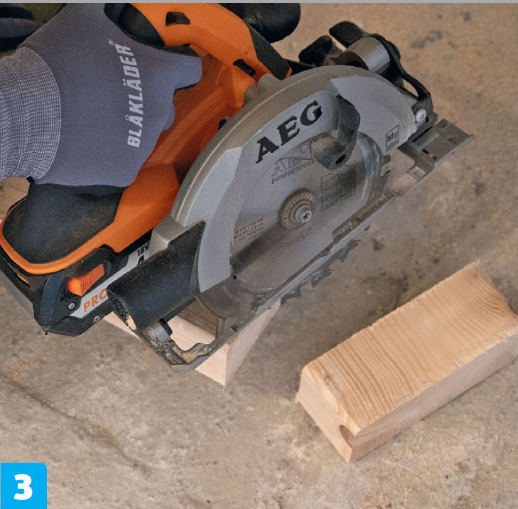 Sahaa palkki poikki. Se on helpointa tehdä akkumoottorisahalla tai puukkosahalla. Ei haittaa, vaikka terä osuu aluskatteeseen, sillä sen voi korjata myöhemmin.