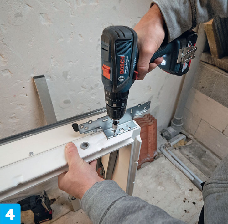 Asenna ikkunaan kuuluvat kiinnikkeet. Kiinnitä raudat ikkunan mukana tulevilla 30 millin ruuveilla. Ruuvien paikat on merkitty selvästi.