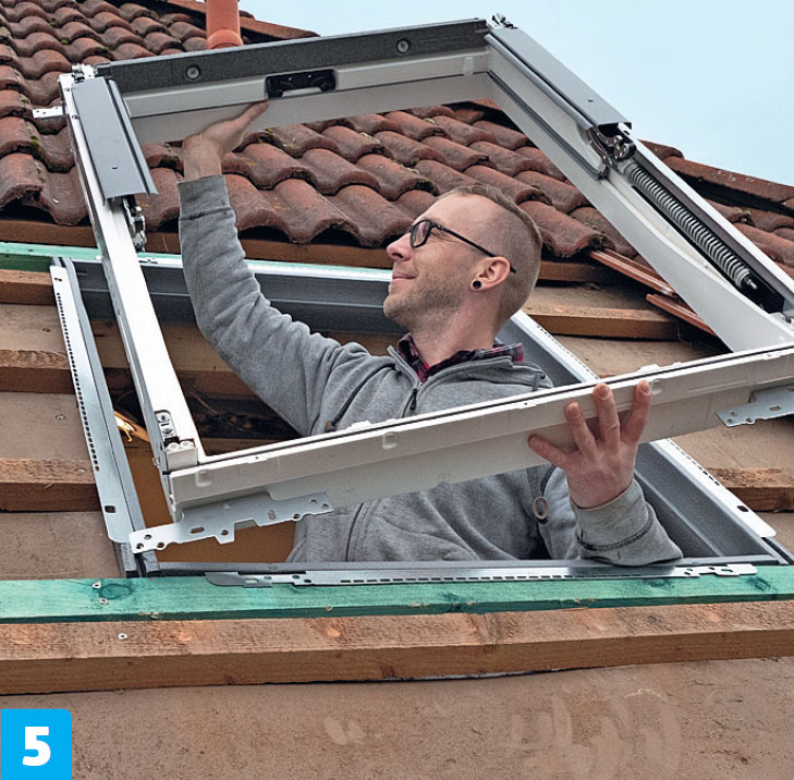 Ikkunan puite irrotetaan uudestaan, jotta aukosta pääsee helposti katolle.