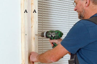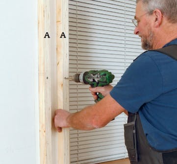 Ruuvaa tulpat kiinni. Sijoita karmitulpat noin 50 cm:n välein koko tolpan pituudelle. Toista työvaihe vastakkaisessa seinässä.