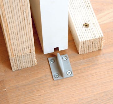 Kiinnitä alaohjuri (lattian ohjuri) lattiaan vähän palkkipäädyn ulkopuolelle. Ole tarkka ohjurin paikan suhteen, jotta ovilevy osuu tarkasti keskelle onttoa seinäväliä.