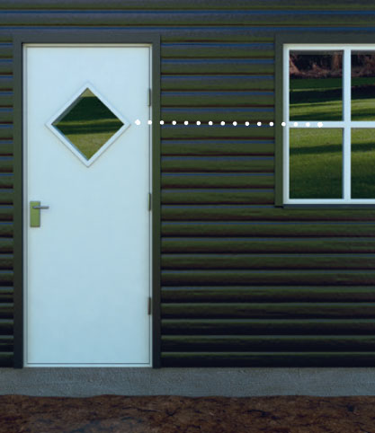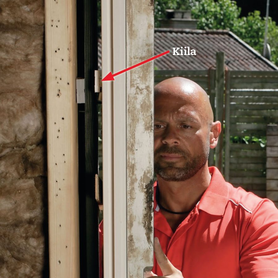 Nyt saat seuraavan - ehkä tärkeimmän - vinon vinkin: aseta karmi vinoon lukkopuolelta. Toisin sanoen, aseta se tarkasti yhtä vinoon kuin ovilehtikin.