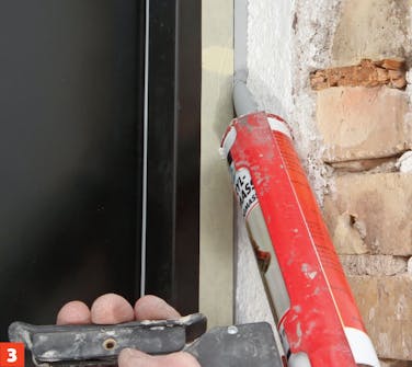 Paina pyöreä saumanauha rakoon. Jätä sen pinta 6-8 milliä karmin sisäpuolelle. 16 millin saumanauha on yleensä sopiva.