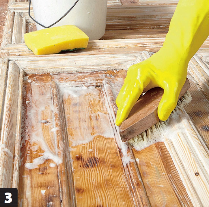 Levitä ovelle paksu kerros lakanpoistoainetta pensselillä. Levitä ainetta etenkin koristeleikkauksiin, sillä niitä on vaikea kaapia tai hioa puhtaiksi.