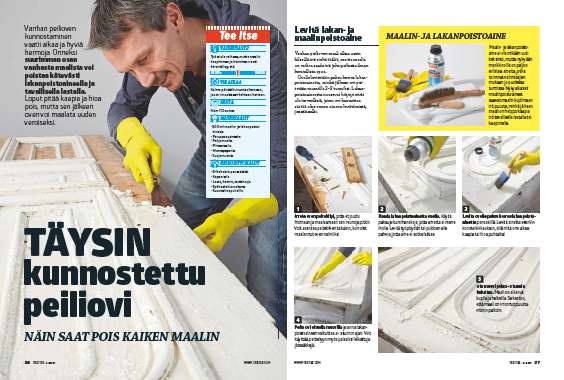 Peitä ovi ohuella muovilla ja anna lakanpoistoaineen vaikuttaa 2-3 tunnin ajan. Voit käyttää peittelyyn myös palasiksi leikattuja jätesäkkejä.