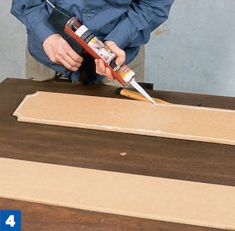 Liimaa levyt oveen. Mittaa aluksi levyjen tarkat paikat ja liimaa peilit kiinni asennusliimalla. Kiinnitä levyt lisäksi parilla pienellä naulalla.