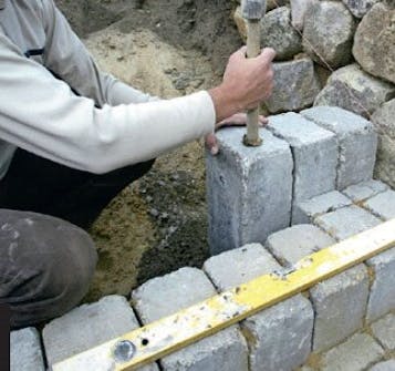 Asenna seuraavat kivet, kun alimman rivin kivet ovat paikoillaan. Lado kivet siten, että ylemmän rivin sauma osuu alemman kiven puoliväliin.