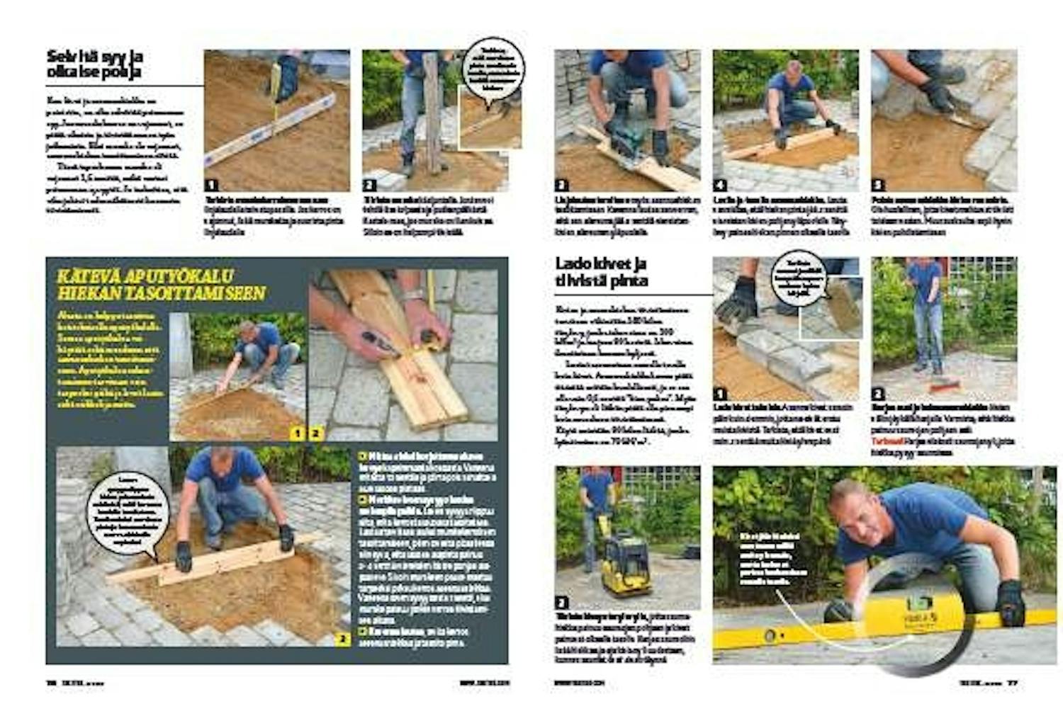 Kivien ja saumahiekan tiivistämiseen tarvitaan vähintään 180 kilon tärylevy, jonka iskuvoima on 200 kNm2 ja taajuus 90 hertsiä. Iskuvoima ilmoitetaan koneen kyljessä.