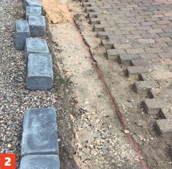 Viritä linjalanka. Oikeanpuoleinen lanka näyttää kiveyksen reunalinjan ja kivien korkeuden. Viritä lanka sentin reunakivien yläpuolelle ja sentin päähän kivien reunasta.