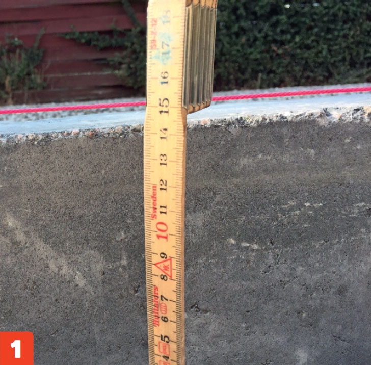 Tarkista korkeus. Nämä reunakivet ovat 21 senttiä korkeita. Pihatiet ovat eri tasoilla, mutta 14 senttiä korkea reuna pitää hiekan ja pikkukivet rajan oikealla puolella.