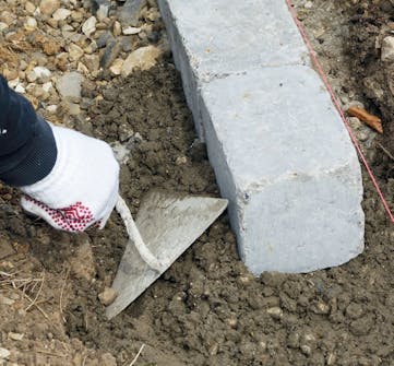 Kaada betonia kouruihin, joihin reunakivet asennetaan. Sille alueelle, josta autolla on tarkoitus ajaa yli, valitaan yläpinnaltaan viistoreunaiset harkot, jotta niiden yli on helpompi ajaa.
