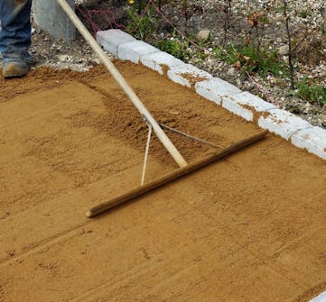 Levitä alustalle asennushiekkaa. Jaa se lapiolla alueelle mahdollisimman tasaisesti. Valmiin kerroksen korkeus on reilut 3 cm. Tätä kerrosta ei tiivistetä.