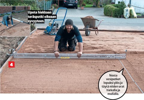 4-5 neliön asentaminen vie päivän, jos teet pohjan käsivoimin.