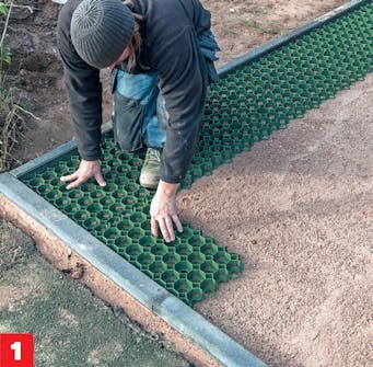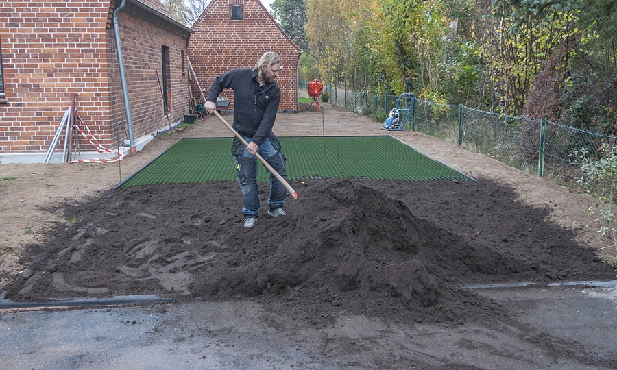 Kaiva noin 40 senttiä syvä kuoppa, jossa on tilaa sekä kantavalle kerrokselle (noin 30 senttiä), asennushiekalle (4-5 senttiä) että nurmikennoille (noin 4 senttiä).