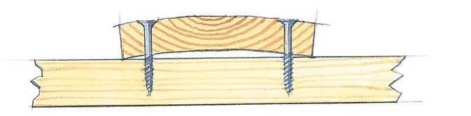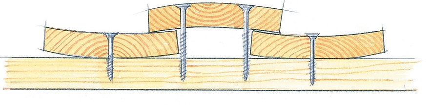 Jos lautoja on vain yksi kerros, tulee ydinpuun olla ulospäin, jolloin laudan ulkoreunat vääntyvät alustaan päin.