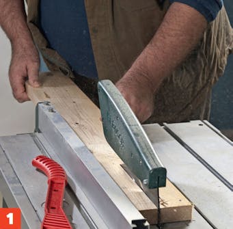 Höylätyt laudat halkaistaan pituus-suunnassa. Tämä on helpointa tehdä pöytäpyörösahalla. Jos sitä ei ole saatavilla, voit käyttää tavallista pyörösahaa.
