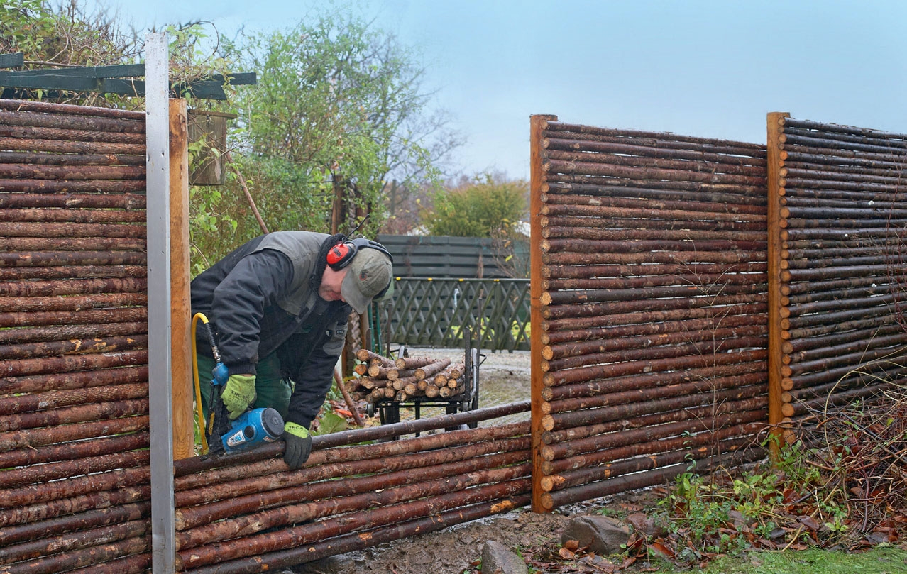 Siinä tapauksessa voit rakentaa aidan ohuista rangoista. Kuorimattomat kuusi-rangat kiinnitetään seipäisiin siten, että puun toinen pää kiinnitetään tolpan etupuolelle ja toinen tolpan taakse. Rangoista tehty aita kestää vähintään 30 vuotta.