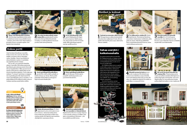 Osat kootaan liimalla ja ruuveilla. Kokoa ensin irto-osat. Jos olet ollut tarkka, portista tulee jo itsestään melko vankka. Osia ei saa liittää toisiinsa löyhästi, mutta et myöskään saa käyttää työssä voimaa.