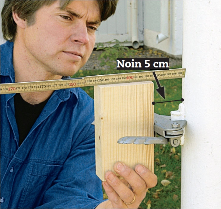 Asenna kapea lista (H) ylälaudan päälle ennen kuin hiot. Lista ulottuu 5 mm yli molemmista sivuista ja suoja näin porttia sateelta.