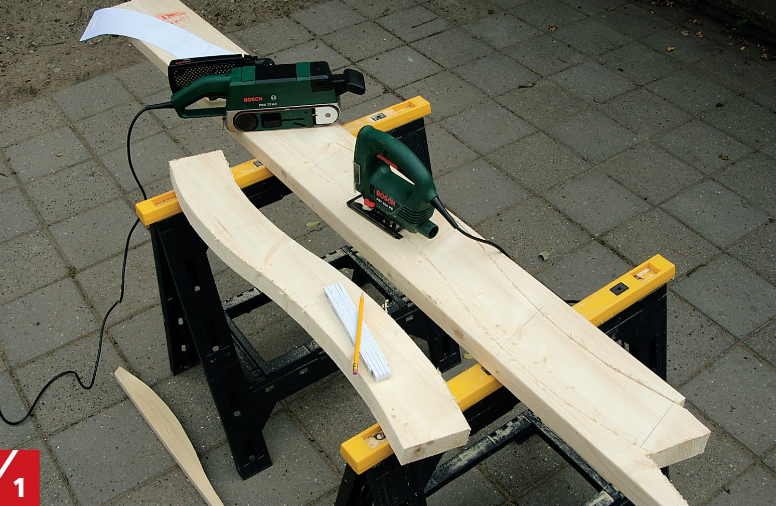 Malliporttia tehtäessä ensimmäiseksi sahattiin yläosan kehyspuut (K). Niiden muodon voi piirtää itse tai kopioida alla olevasta kaavasta. Tarvittavat kaksi ylälautaa sahataan pistosahalla.