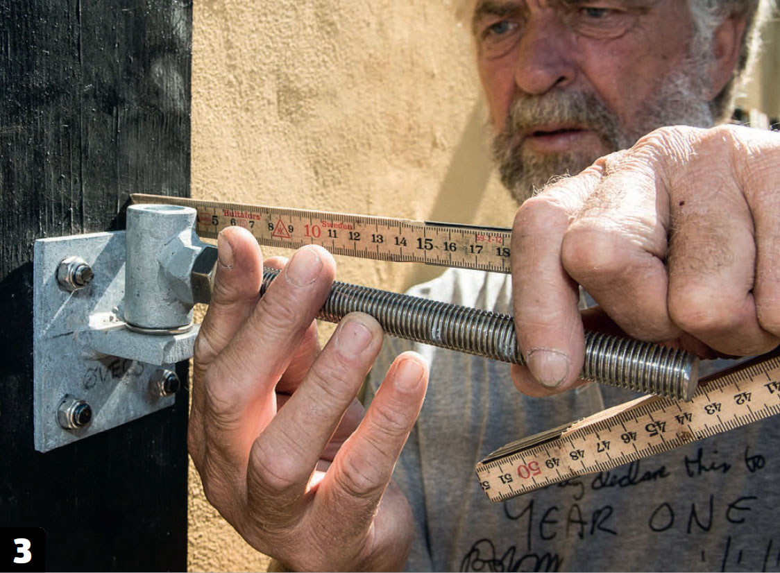 Mittaa sarana. Tämä sarana vie tilaa 8 senttiä. Vähennä saranan syvyys portin leveydestä ja ota huomioon myös se, että portin ja tolpan väliin pitää jäädä 2 sentin rako.