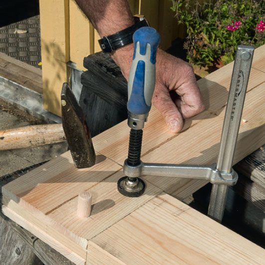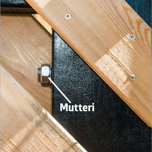 Kohdista seuraava lauta paikalleen välikapuloiden avulla. Siirrä niitä aina ennen seuraavan laudan asentamista.