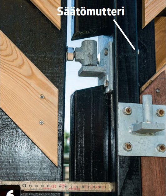 Varmista, että porttien väliin jää pienet raot. Mittaa porttien leveys rakennusvaiheessa ja hienosäädä niiden paikkoja, kun asennat saranat.