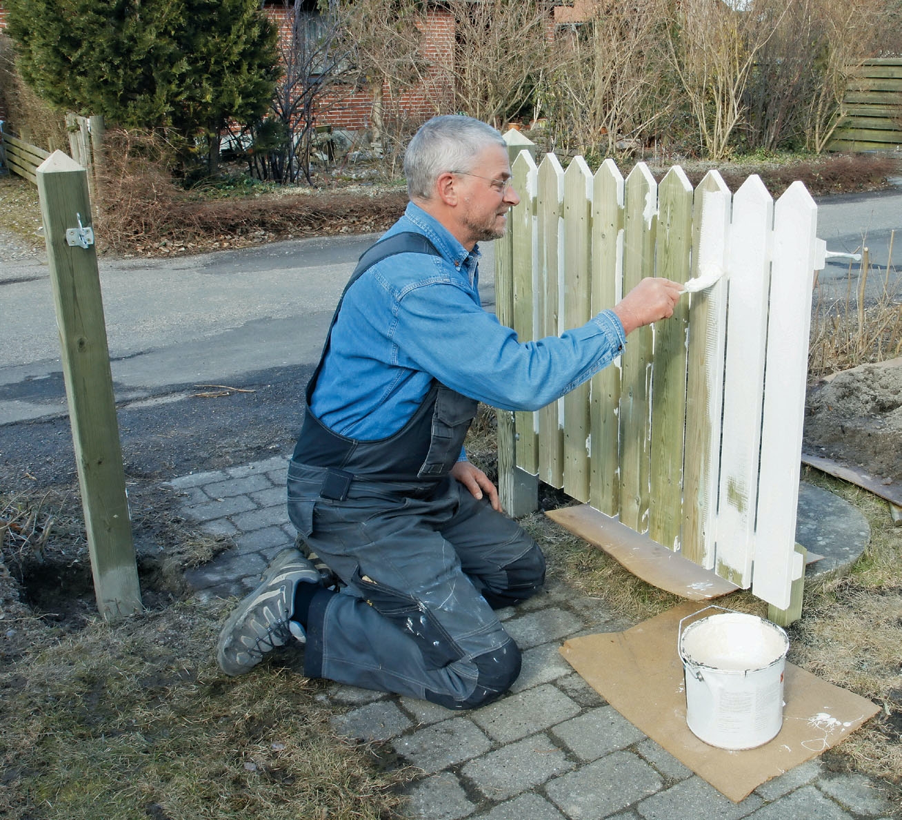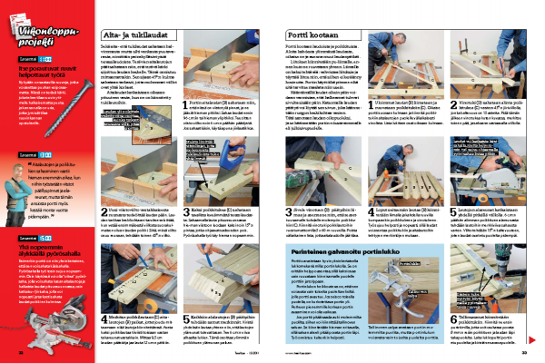 Liitokset kiinnitetään pu-liimalla, en-nen kuin ne ruuvataan yhteen. Liimalla on kaksi tehtävää: vahvistaa liitoksia ja täyttää liitos niin, että siihen ei keräänny kosteutta. Portin käyttöikä pitenee eikä sitä tarvitse maalata niin usein.