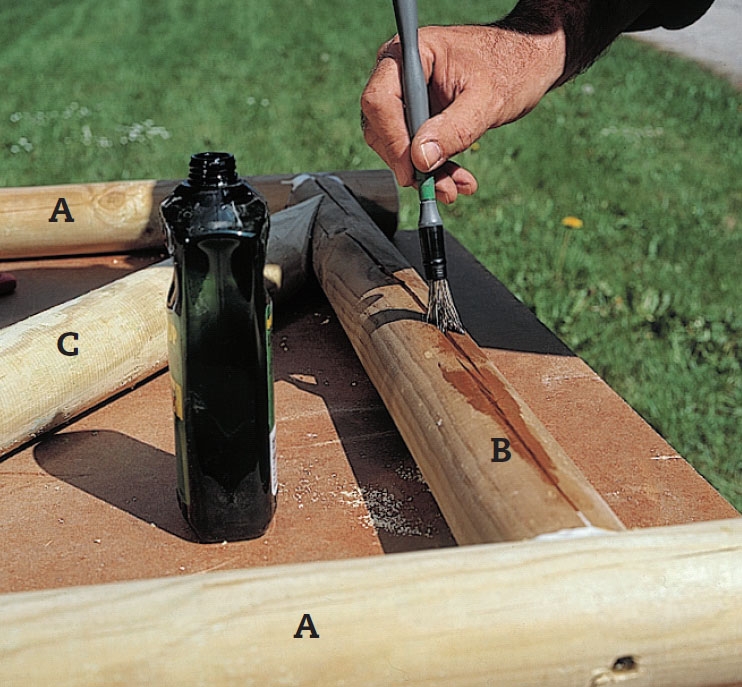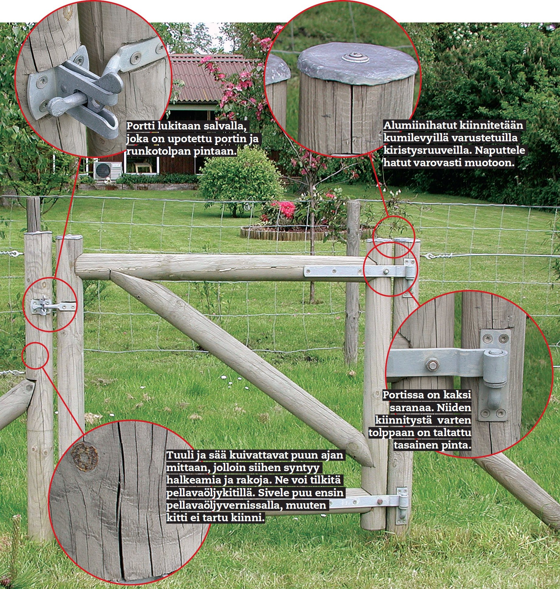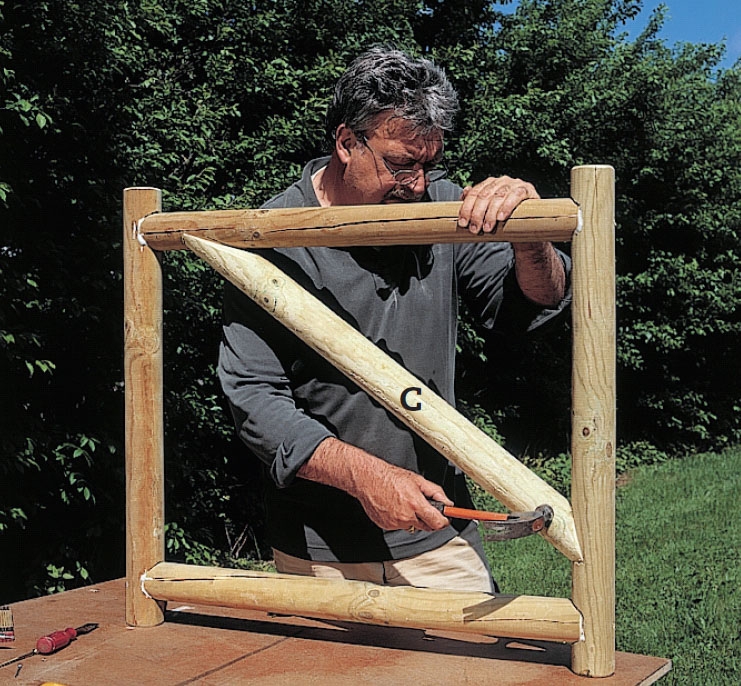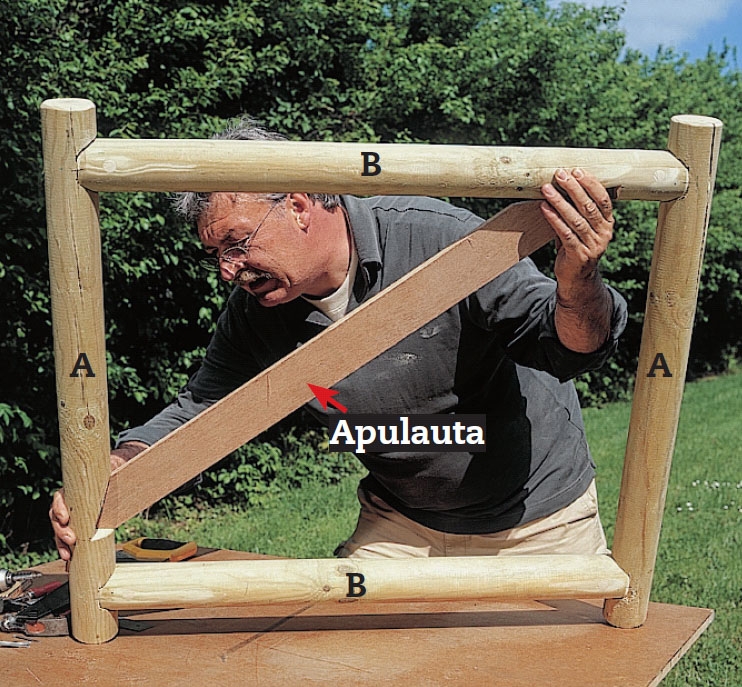 Pyöreiden tolppien liitokset vaativat hieman näppäryyttä ja perusteellisuutta. Muut työvaiheet sopivat kaikille.