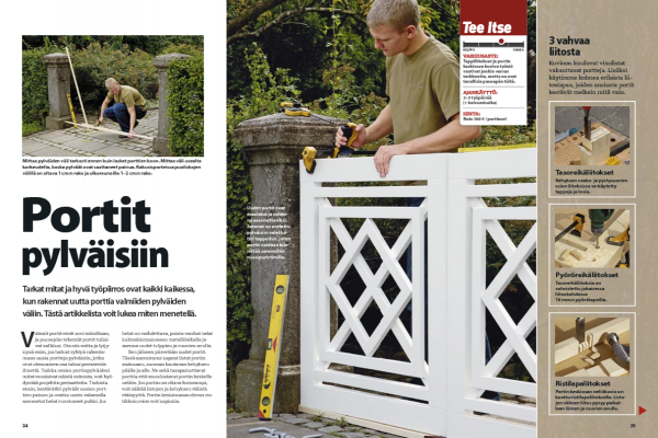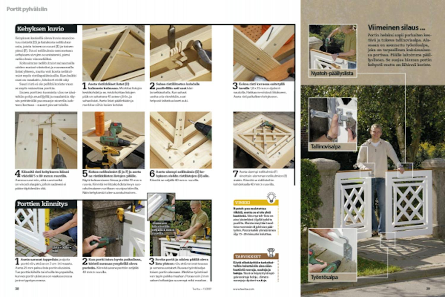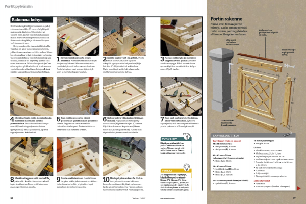 Tappiliitokset ja portin keskiosan kuvion työstö vaativat jonkin verran tarkkuutta, mutta ne ovat tavallisia puusepän töitä.