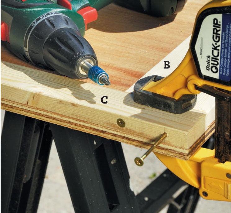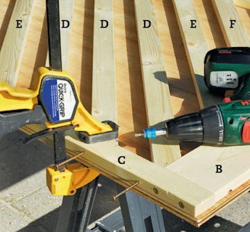 Kokoa portin kehys. Aseta osat suorakulmaiselle levylle ja kiinnitä listat puristimilla ruuvauksen ajaksi.
