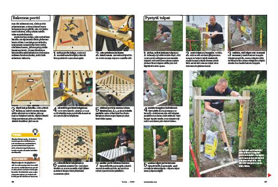 Kun olet sahannut osat, aloita portin rakentaminen. Kokoa rakenne suorakulmaisen levyn päällä, niin voit jatku-vasti tarkistaa, että portista todella tulee suorakulmainen.