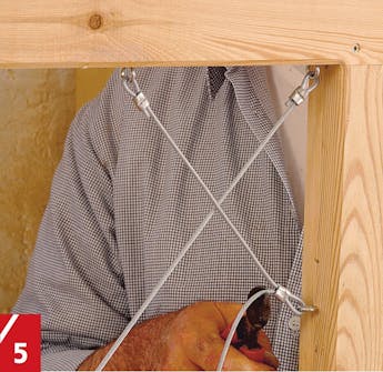 Sahaa kolo säleikön ’jalkojen’ sisäpuolel-le niiden sovittamiseksi laatikon reunalistoi-hin. Voit esimerkiksi jännittää palan apulistaa kehikkoon kiinni ja sahata aukon reikäsahal-la. Jos sinulla ei ole reikäsahaa käytettävissäsi, sahaa aukko pistosahalla.