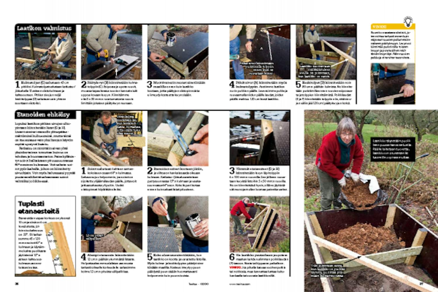 VINKKI: Jos pihalla kasvaa vuohenputkia tai nokkosia, maa kannattaa kattaa kuitu-kankaalla tai vuorata laatikko sillä.